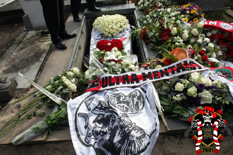 Het was enorm druk op de dienst en begraafplaats. VAK410 vormde een erehaag met fakkels. Er werd gesproken, en tot slot werd er door de groep nog afscheid genomen bij zijn graf. We hebben hem van alles meegegeven om Ajax te supporten, daar waar hij nu is.