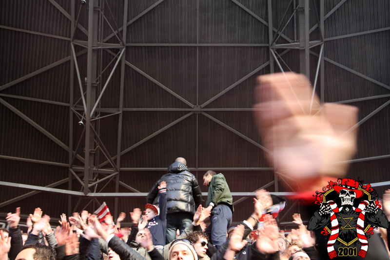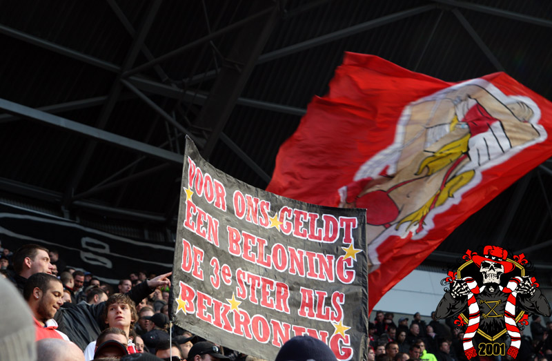 Afgelopen week werd besloten om weer eens de jeugd aan te moedigen. Er stond namelijk een belangrijke wedstrijd op het programma, Ajax - PSV. PSV dat op doelsaldo koploper was. Naast vele andere fanatieke Ajax-supporters gaven ook nog eens 50 tot 60 jongens van VAK410 gehoor aan de oproep.