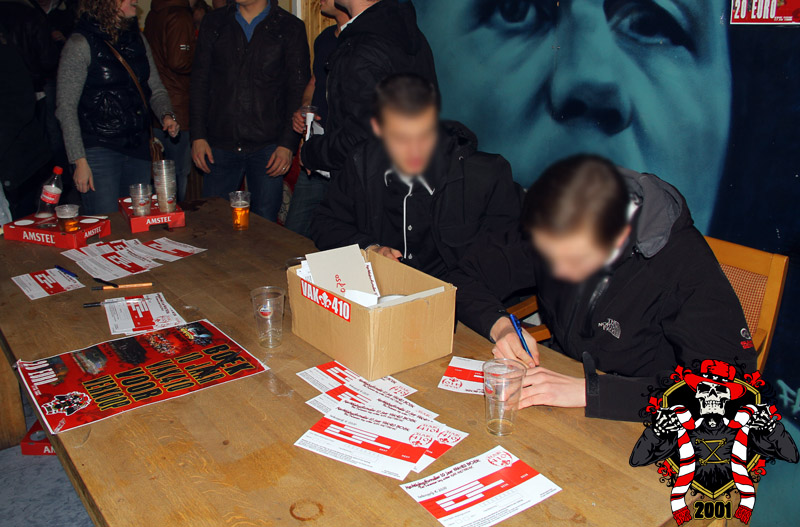 De spelers kwamen na de thee het veld op en keken al gauw naar de spandoeken. Een aantal van hen had al in de gaten dat 410 nu echt wat van zich ging laten horen na een redelijke rustige 1e helft.