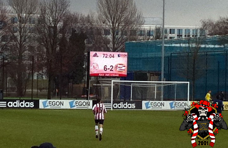 Sommige B1 spelers hadden al via hun twitter laten weten dat we zouden kijken. Vanaf minuut 46 tot het einde wordt er dan ook volop gesteund en de doelpuntenmachine kan beginnen. De jeugd van PSV raakt al snel onder de indruk en wanneer de 3-2 gescoord is, is er geen houden meer aan. Uiteindelijk werd het 6-2.