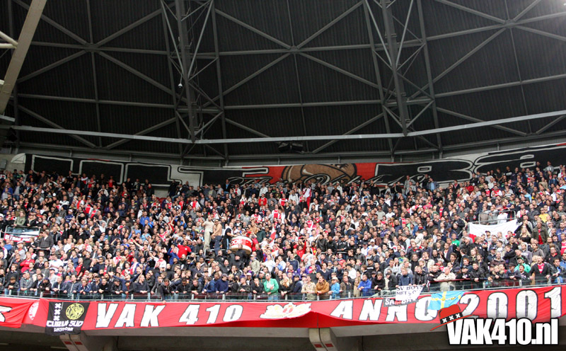 Vorige week zaterdag heeft VAK410 zich tijdens de thuiswedstrijd tegen Twente duidelijk uitgesproken over de huidige situatie rondom uitsupporters/Utrecht/Den Haag. De daaropvolgende maandag heeft FC Utrecht bekend gemaakt dat zij geen supporters mee zullen nemen naar Amsterdam. Opmerkelijk trouwens dat 10 dagen voor de wedstrijd de kaartverkoop niet eens is gestart.