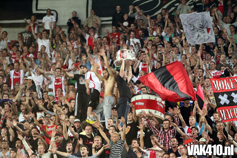Ajax – NAC, een van de vele zaterdagavondwedstrijden op het programma de komende tijd. Het is nog altijd zomer in Amsterdam en dus knap benauwd op de tribune. Aangezien half Nederland nog in vakantie- en festivalsferen is, zien we dat veel kaarten zijn doorverkocht. Veel toeristen en vrouwen dus op de tribune, het is geen fucking Toppers! Her en der worden groepjes dan ook naar boven en de zijkant gestuurd. Denk voortaan dus even na aan wie je je kaarten doorverkoopt!