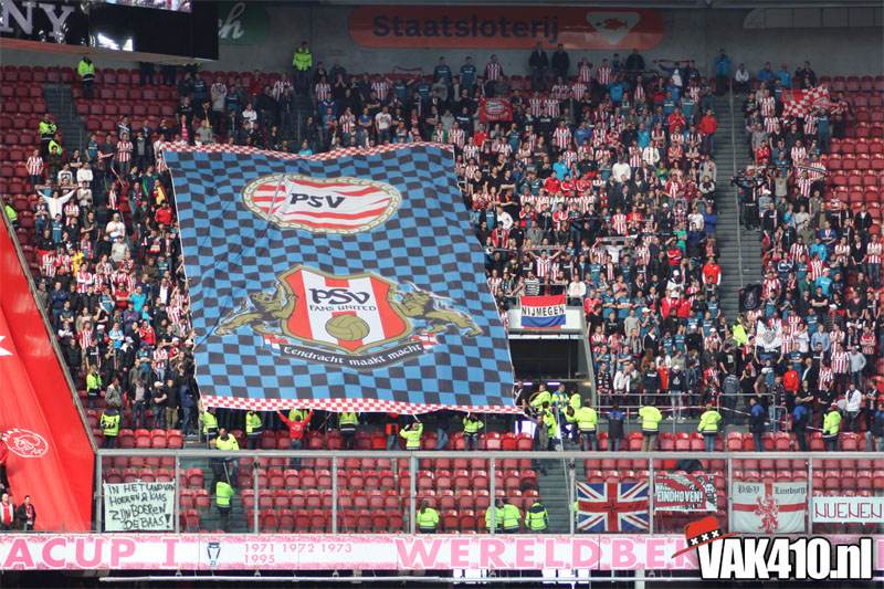 Temeer de tegenstander, geen tegenstander was. Het uitvak was voor deze topper niet uitverkocht. PSV wilde slechts 1.200 kaarten afnemen uit respect naar Ajax omdat zij slechts 1.200 man kunnen meenemen. En dan hebben we het nog niet eens over de Eindhovense stewards die er zorg voor moeten dragen dat het megadoek wel goed over de koppies gaat. Nee, dan win je het niet in Amsterdam...